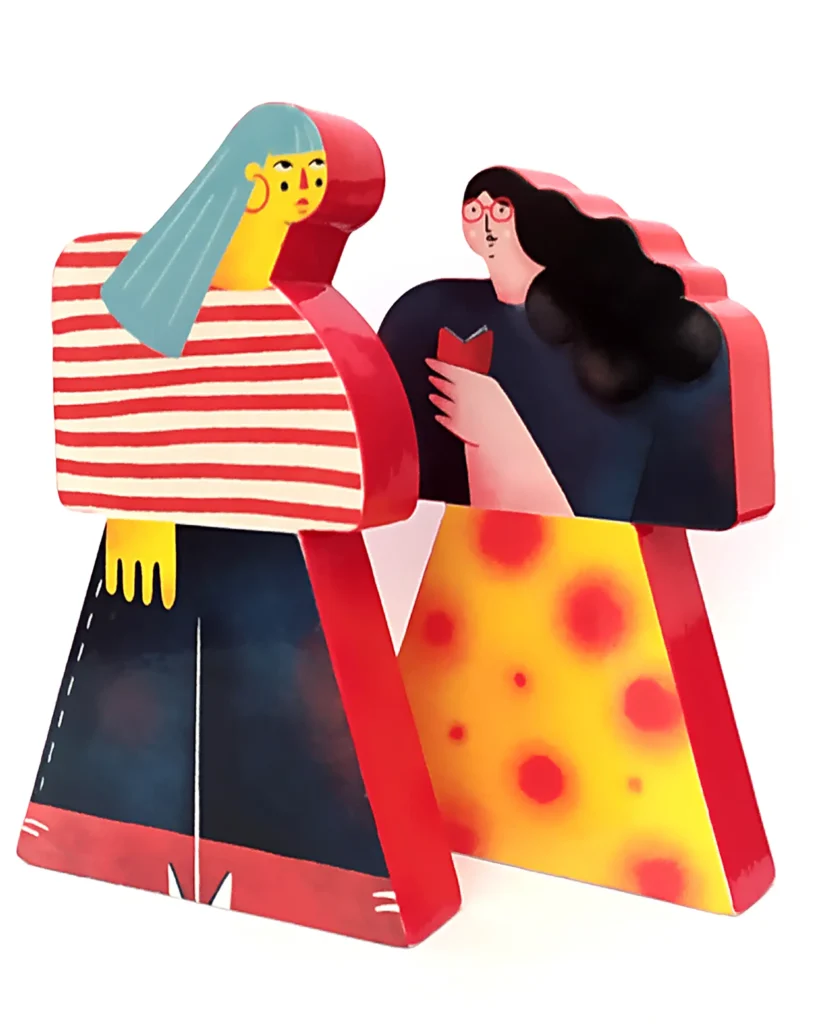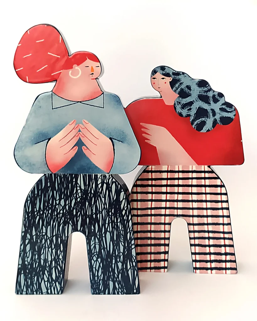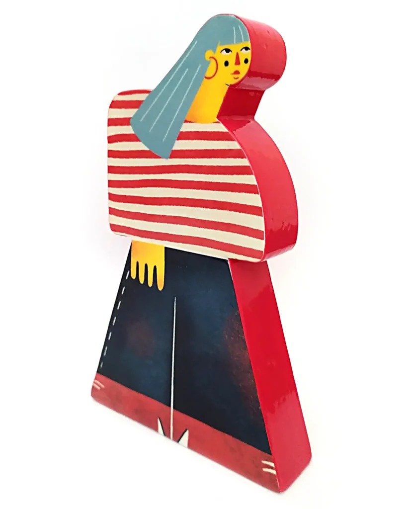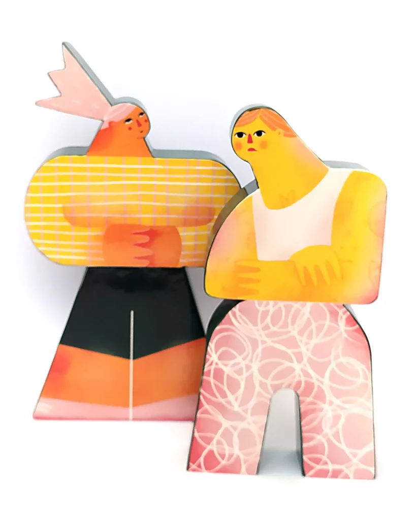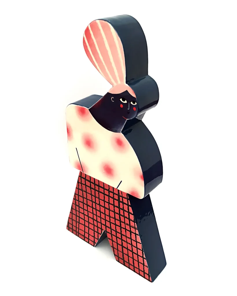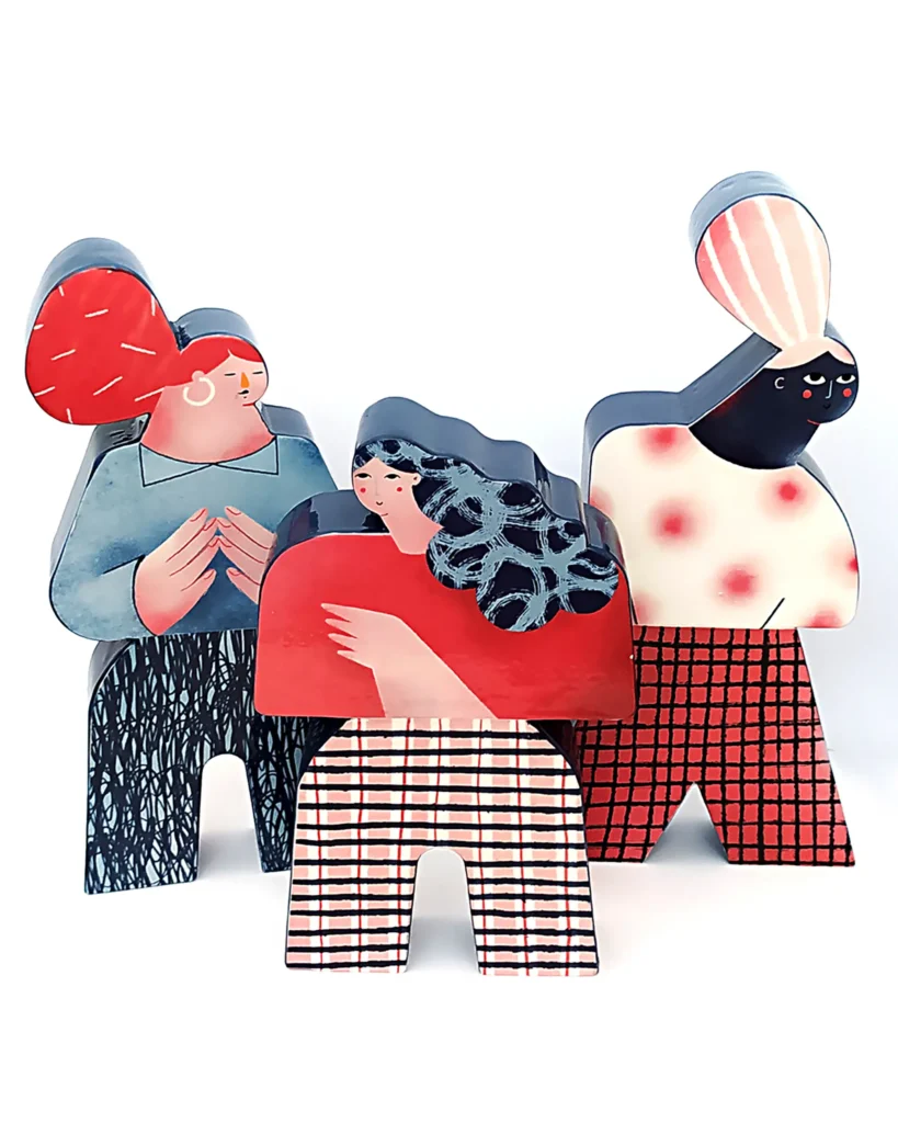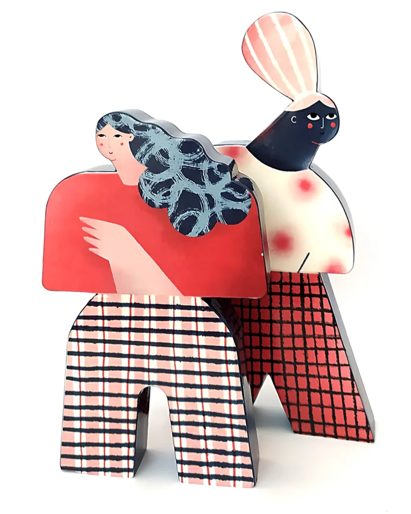 Ilustradora con un estilo muy personal y reconocible, Irene reflexiona sobre la construcción del concepto “familia” ampliando y mostrando toda la diversidad de estructuras familiares más allá de la familia normativa en una serie de piezas realizadas en pasta de loza, esmaltadas y decoradas con engobe y fotocerámica.