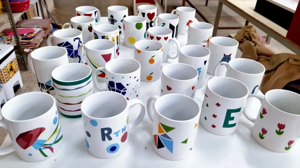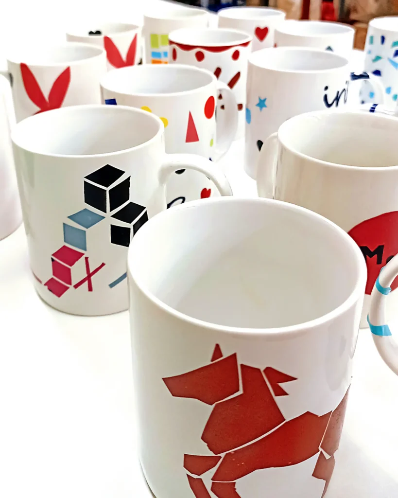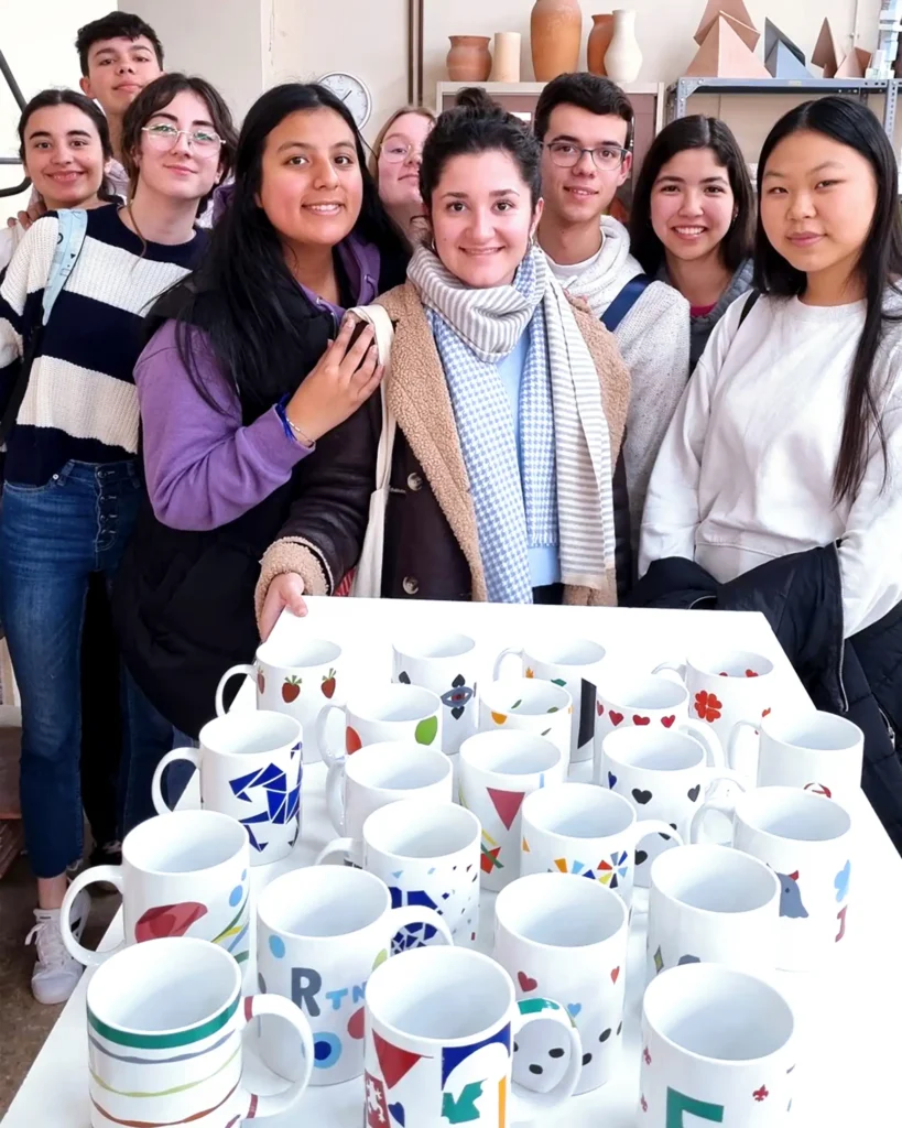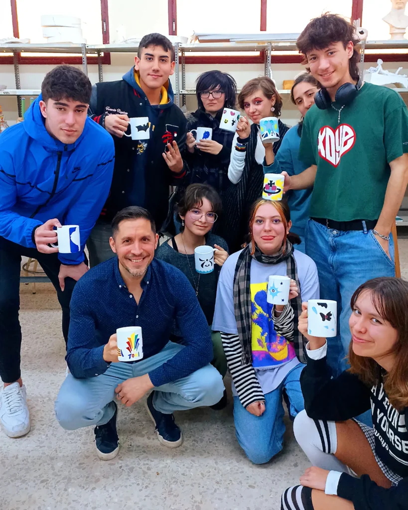 El alumnado con un perfil artístico realizan un pequeño taller de calcas cerámicas con las que decorar sus propias tazas.